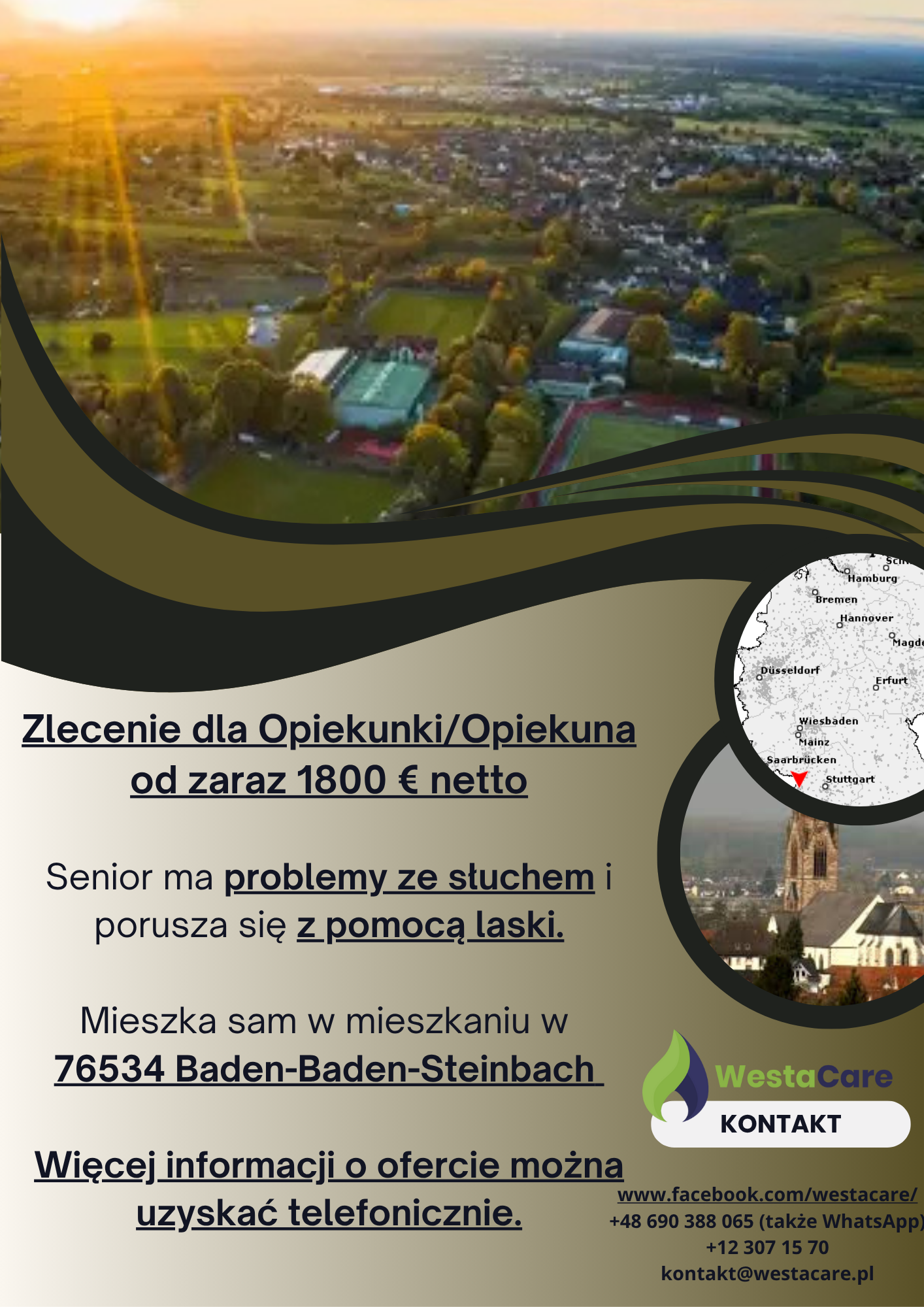 Zlecenie dla Opiekunki/Opiekuna od zaraz 1800 € netto