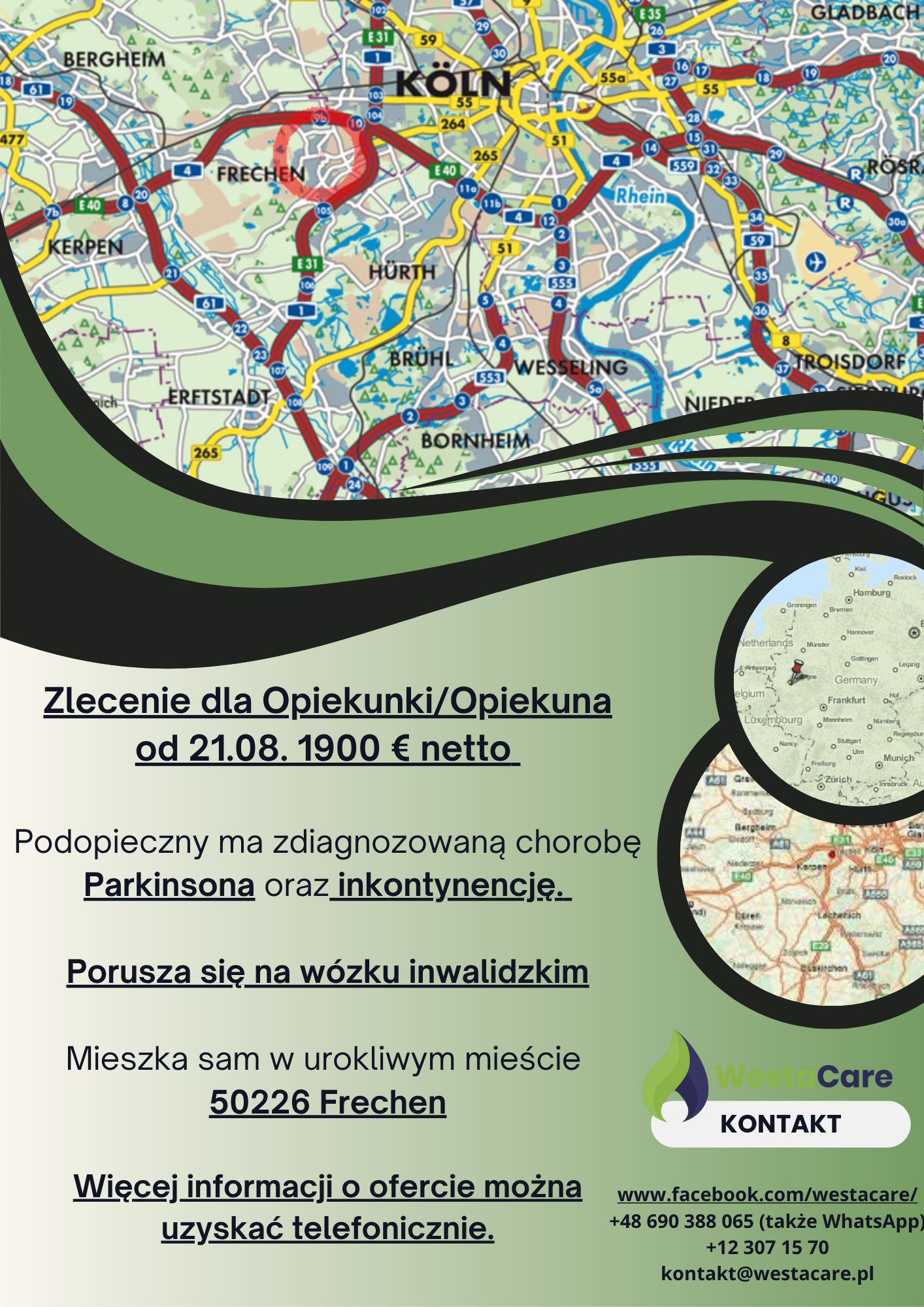 Zlecenie dla Opiekunki/Opiekuna od 21.08. 1900 € netto