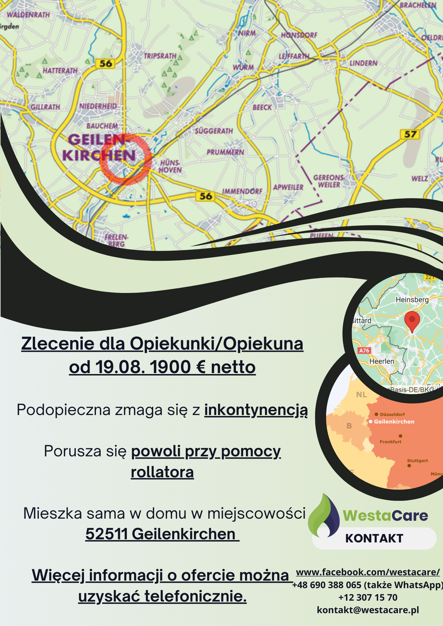 Zlecenie dla Opiekunki/Opiekuna od 19.08. 1900 € netto