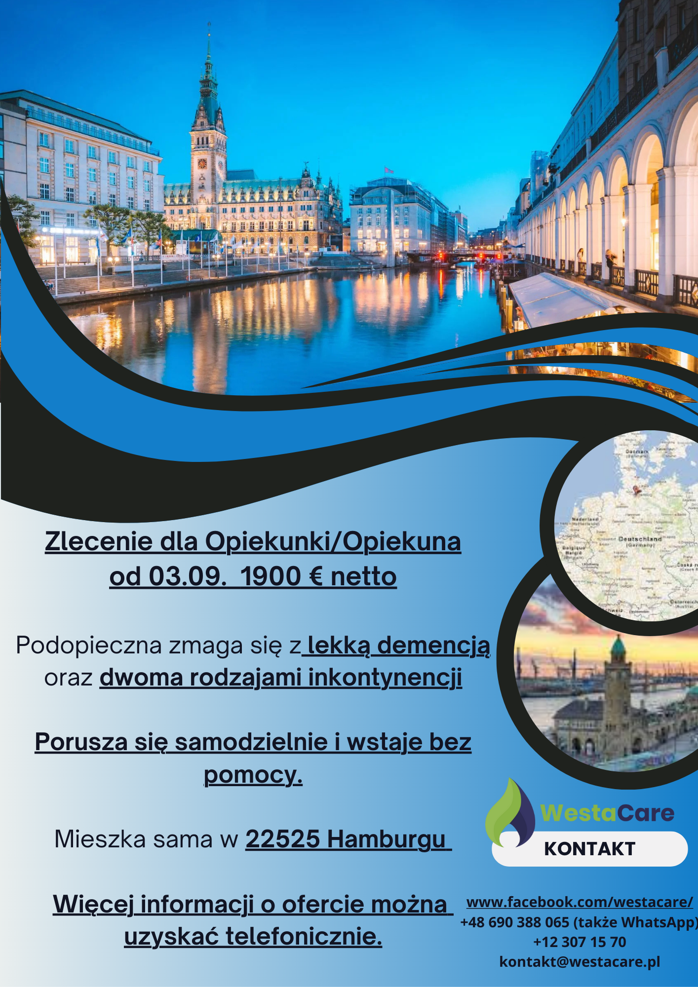 Zlecenie dla Opiekunki/Opiekuna od 03.09. 1900 € netto