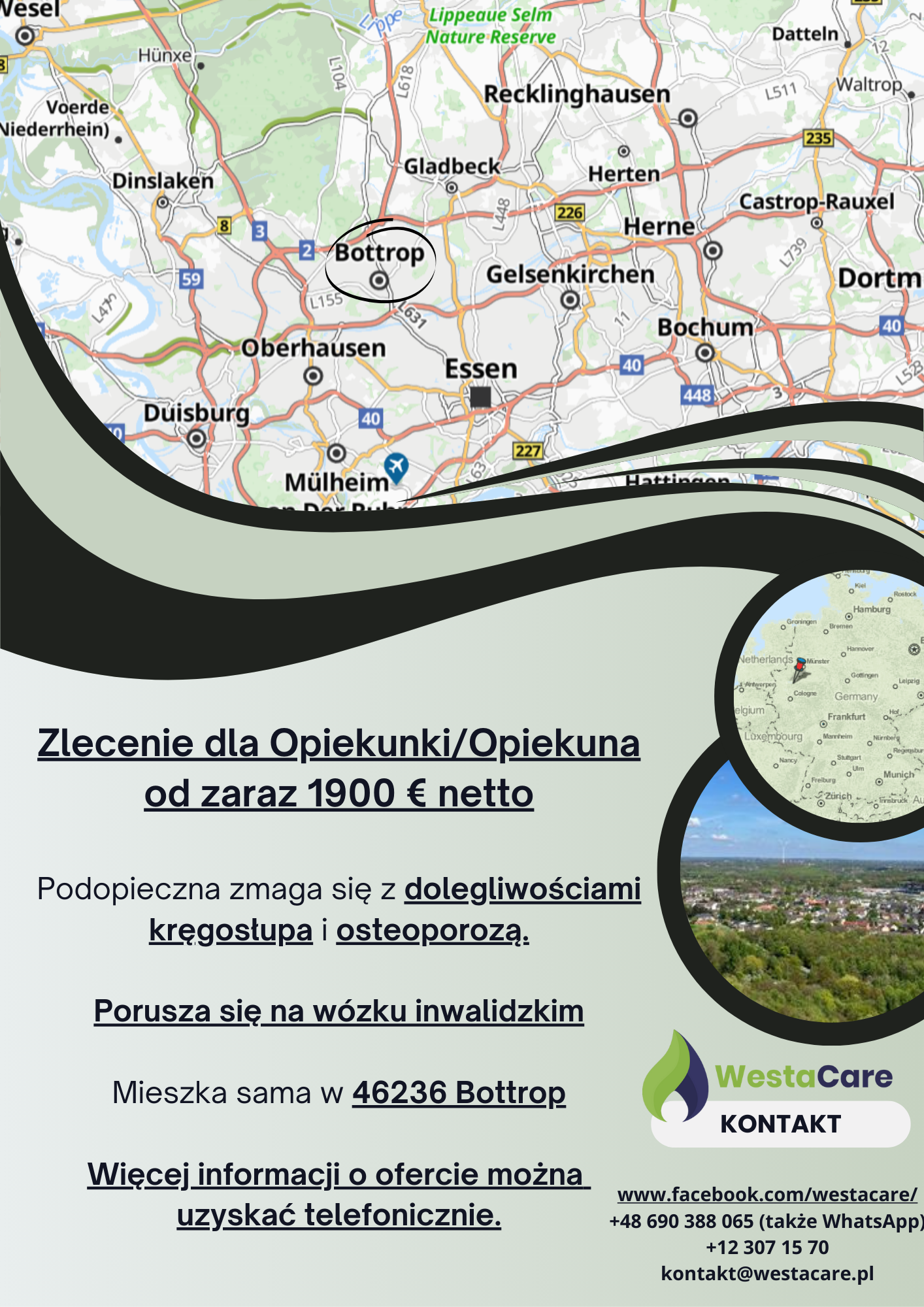Zlecenie dla Opiekunki/Opiekuna od zaraz 1900 € netto