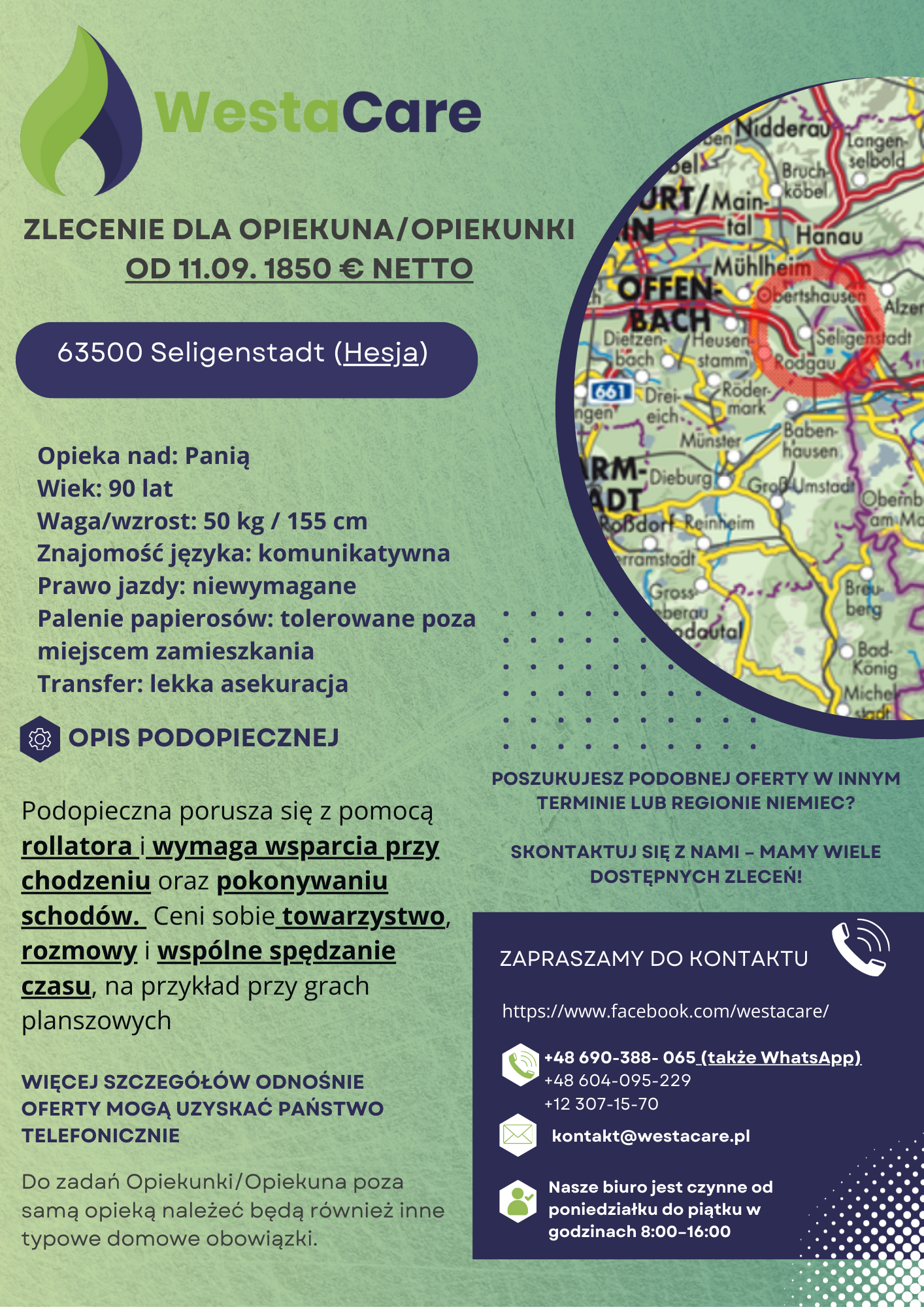 Zlecenie dla Opiekunki/Opiekuna od 11.09. 1850 € netto