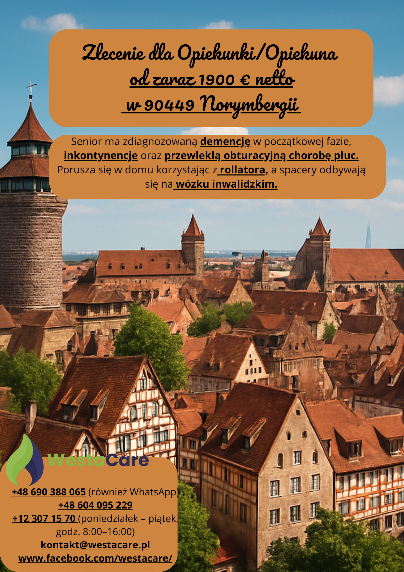 Zlecenie dla Opiekunki/Opiekuna od zaraz 1900 € netto