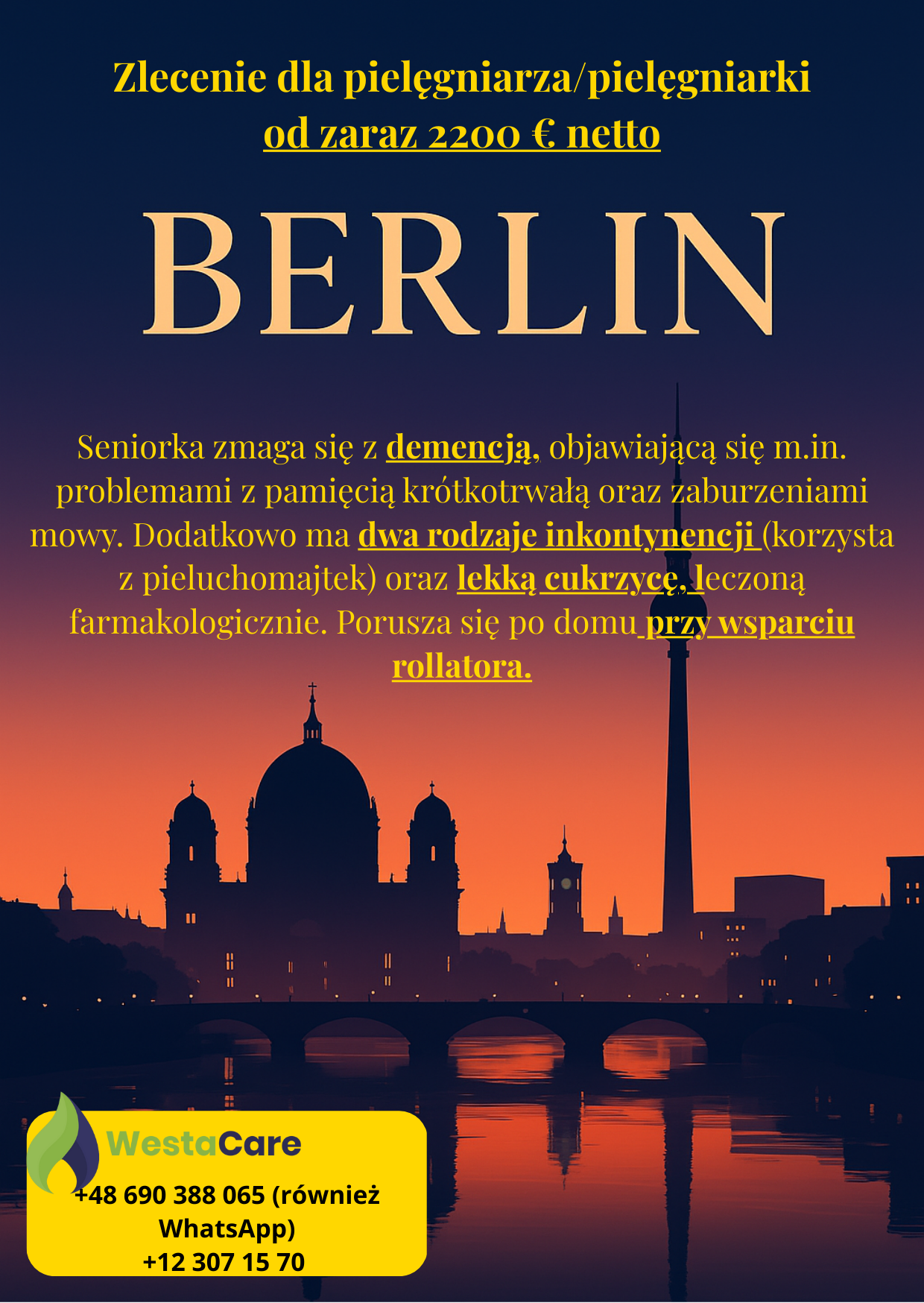 Zlecenie dla pielęgniarza/pielęgniarki od zaraz 2200 € netto