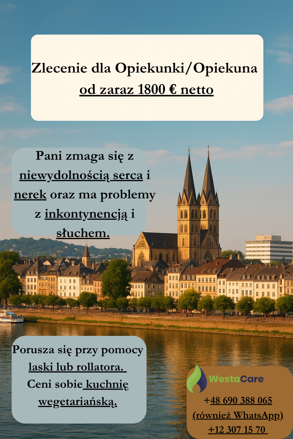 Zlecenie dla Opiekunki/Opiekuna od zaraz 1800 € netto