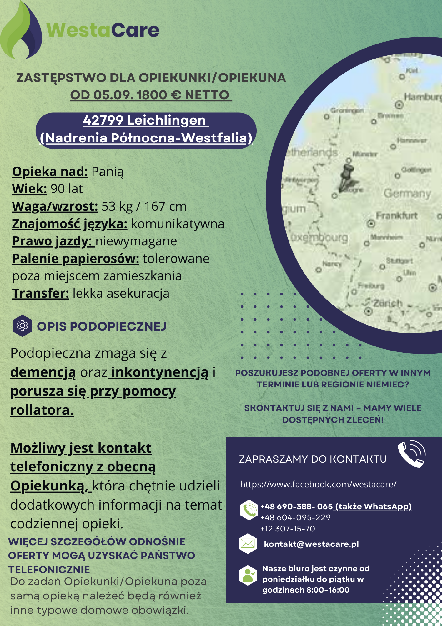 Zastępstwo dla Opiekunki/Opiekuna od 05.09. 1800 € netto