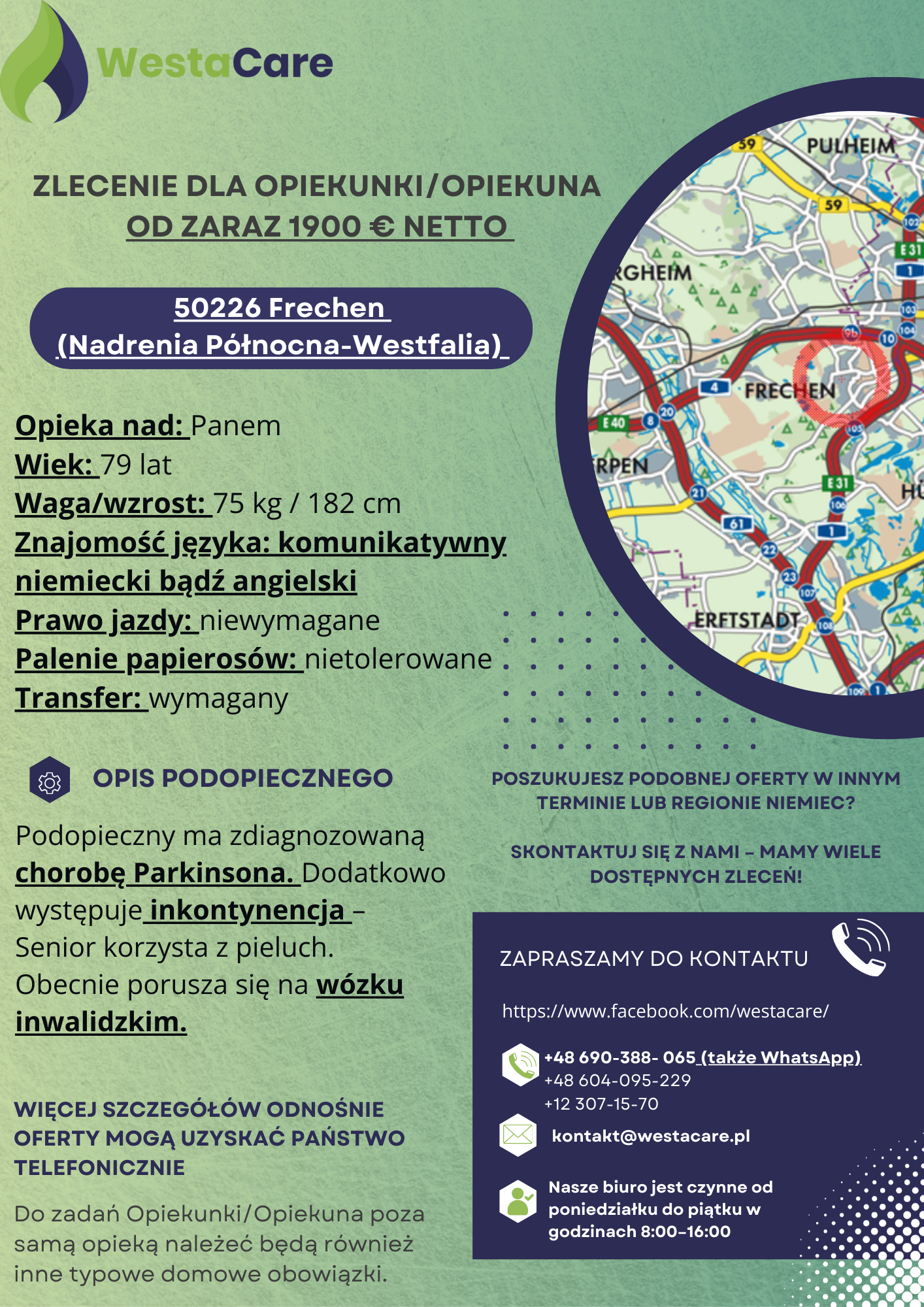 Zlecenie dla Opiekunki/Opiekuna od zaraz 1900 € netto