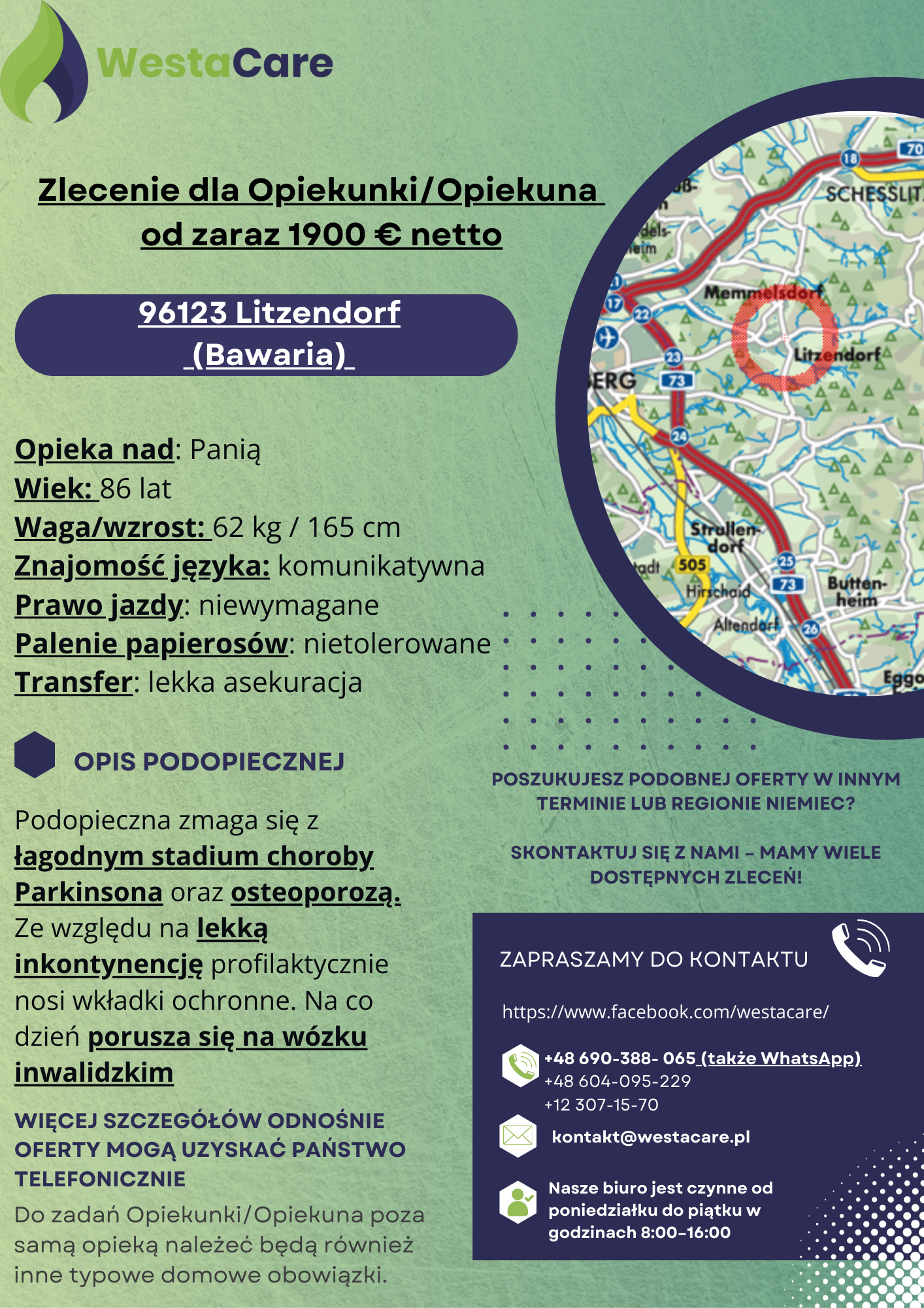Zlecenie dla Opiekunki/Opiekuna od zaraz 1900 € netto