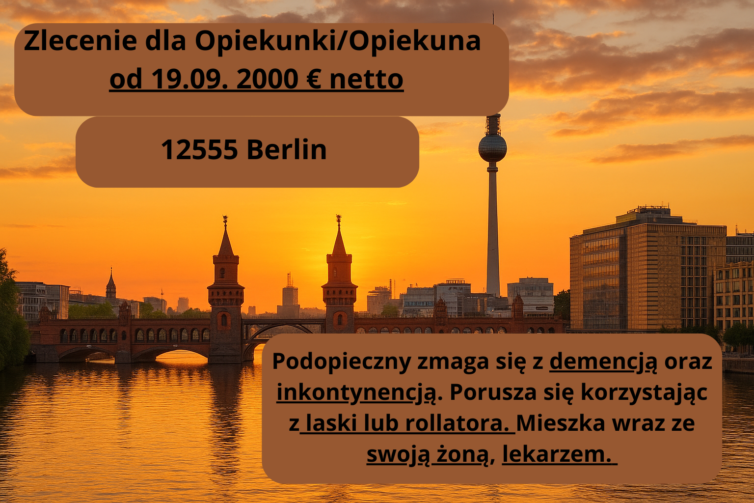 Zlecenie dla Opiekunki/Opiekuna od 19.09. 2000 € netto