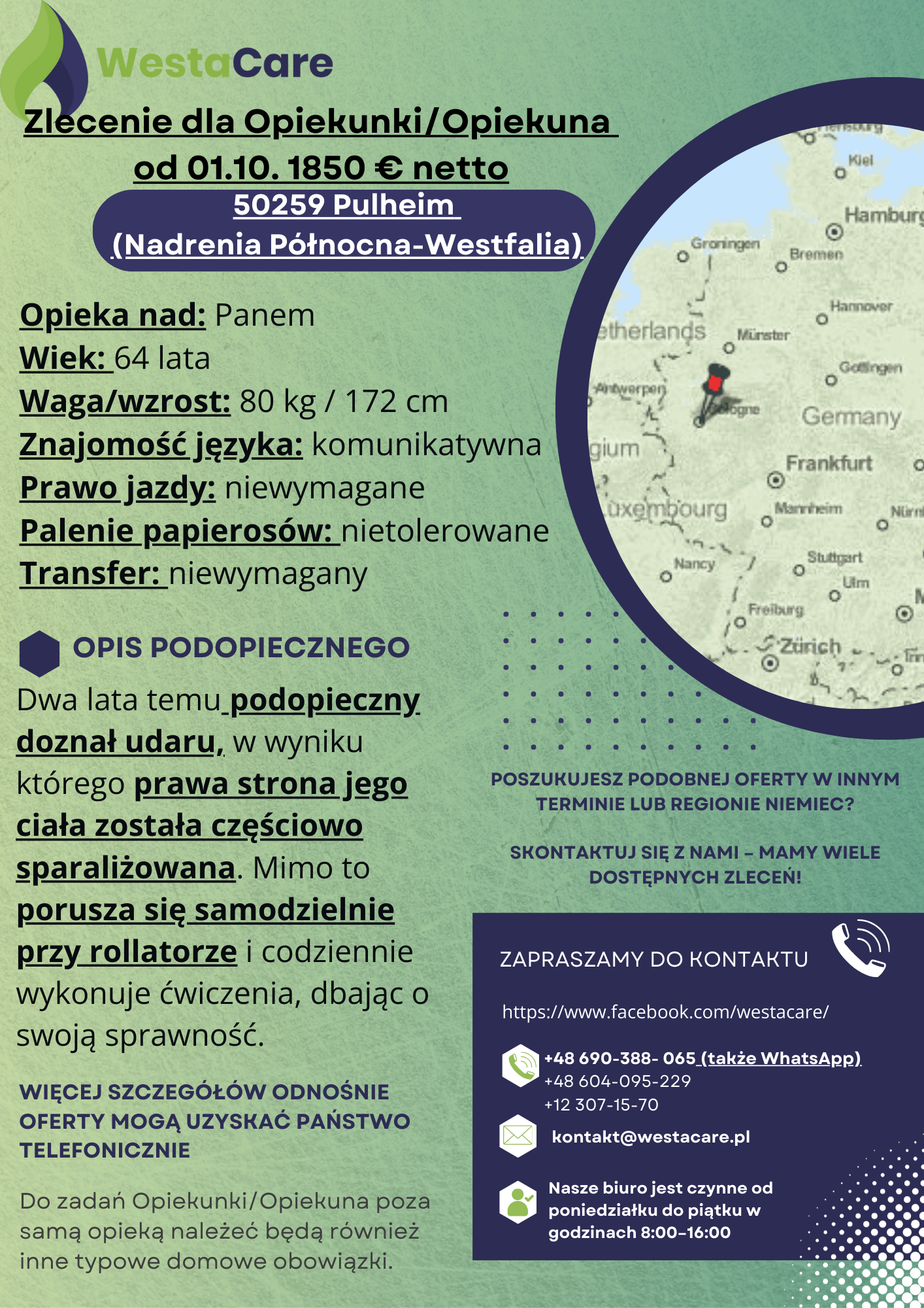 Zlecenie dla Opiekunki/Opiekuna od 01.10. 1850 € netto