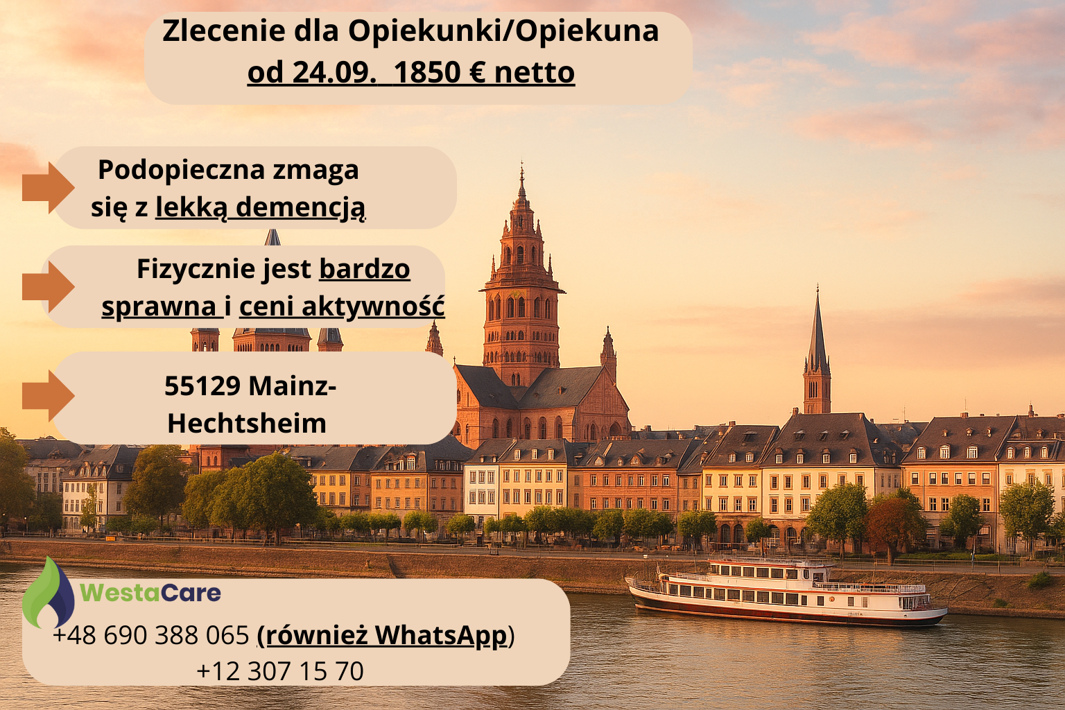 Zlecenie dla Opiekunki/Opiekuna od 24.09. 1850 € netto
