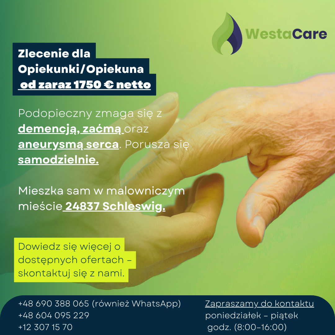Zlecenie dla Opiekunki/Opiekuna od zaraz 1750 € netto