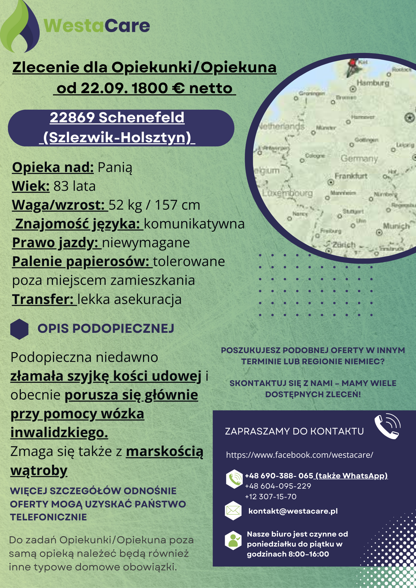 Zlecenie dla Opiekunki/Opiekuna od 22.09. 1800 € netto