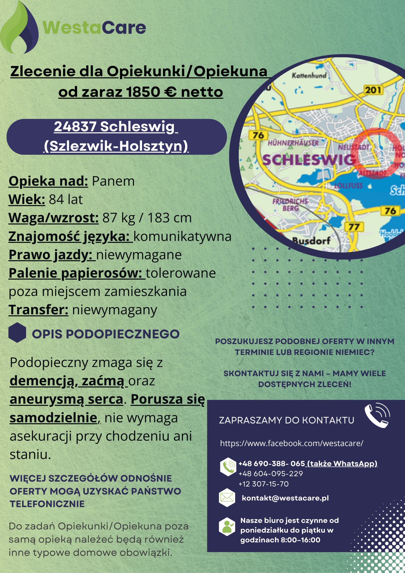 Zlecenie dla Opiekunki/Opiekuna od zaraz 1850 € netto
