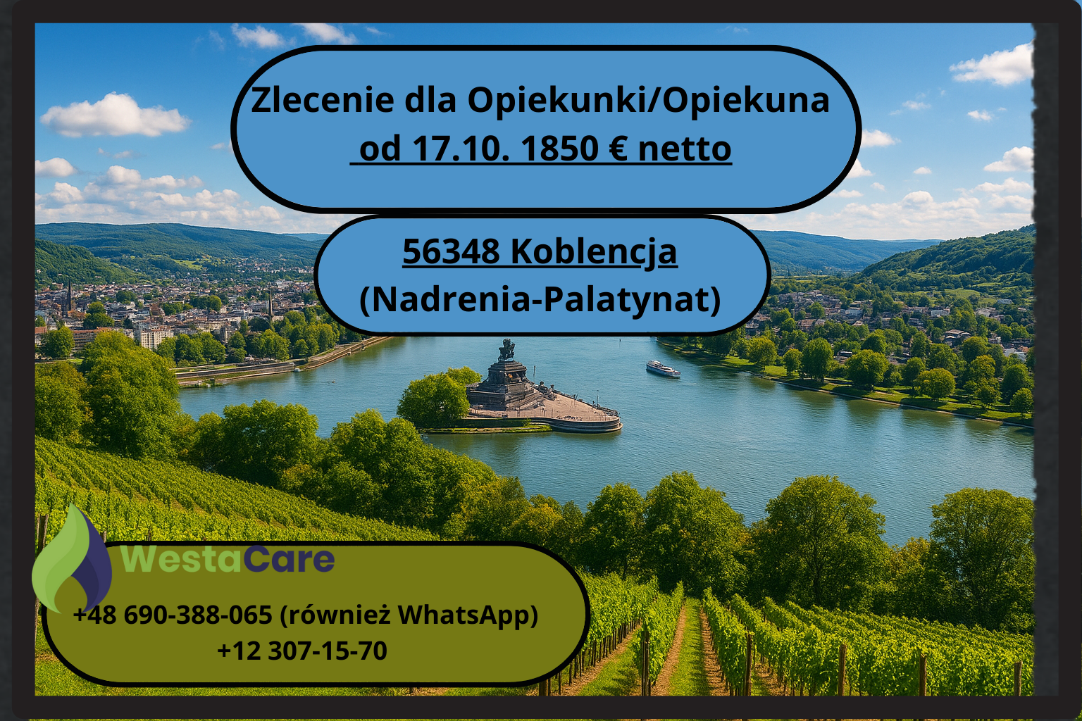 Zlecenie dla Opiekunki/Opiekuna od 17.10. 1850 € netto