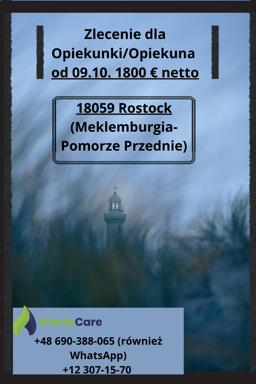 Zlecenie dla Opiekunki/Opiekuna od 09.10. 1800 € netto