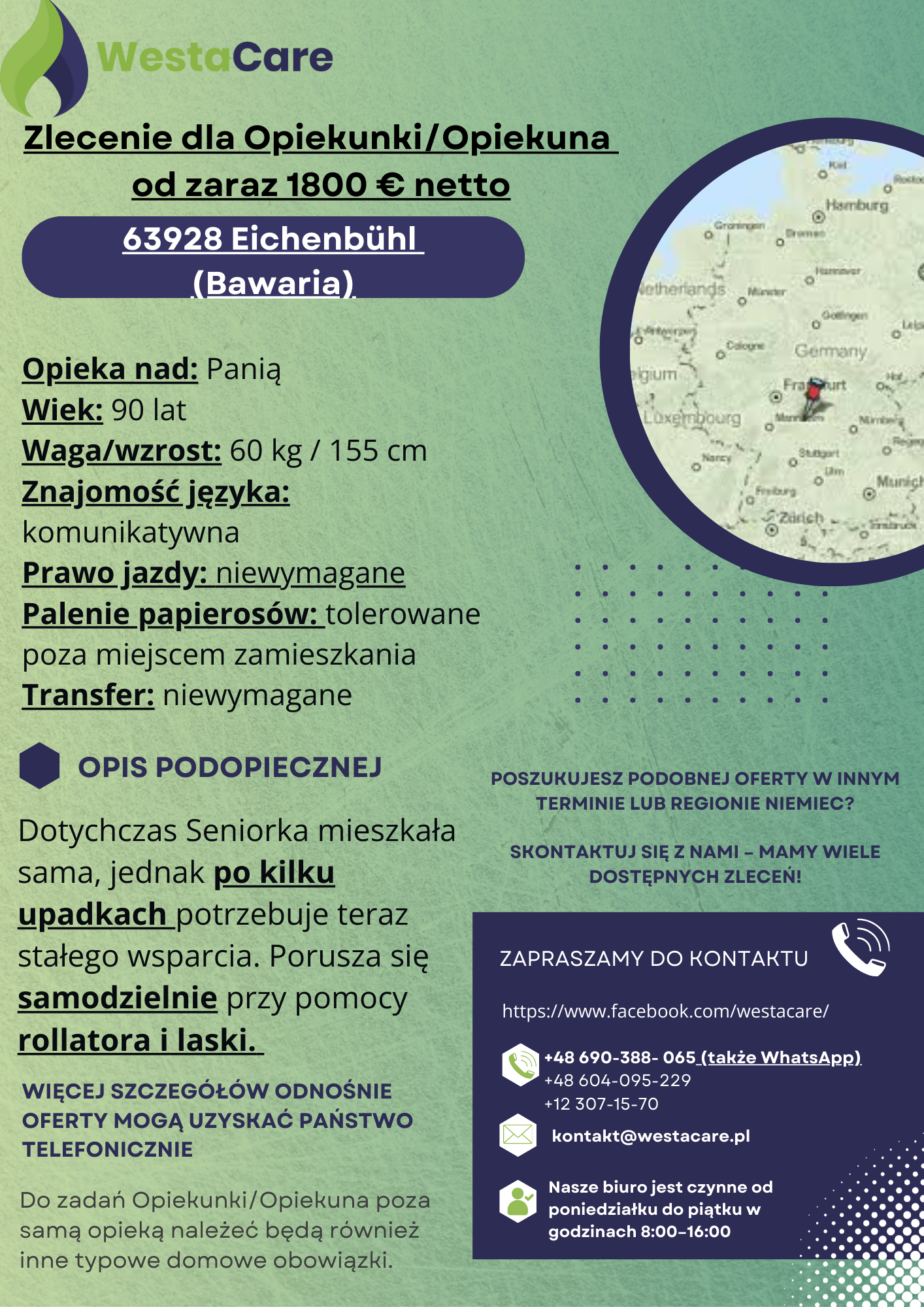 Zlecenie dla Opiekunki/Opiekuna od zaraz 1800 € netto