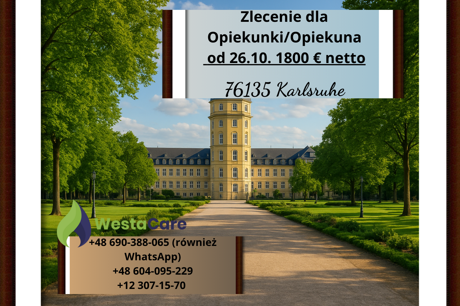 Zlecenie dla Opiekunki/Opiekuna od 26.10. 1800 € netto