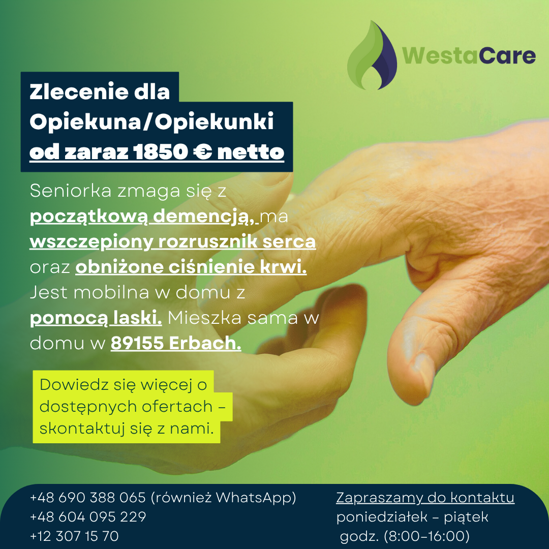 Zlecenie dla Opiekunki/Opiekuna od zaraz 1850 € netto