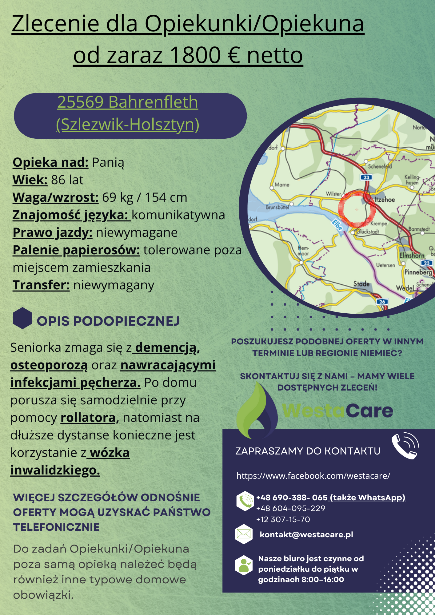 Zlecenie dla Opiekunki/Opiekuna od zaraz 1800 € netto