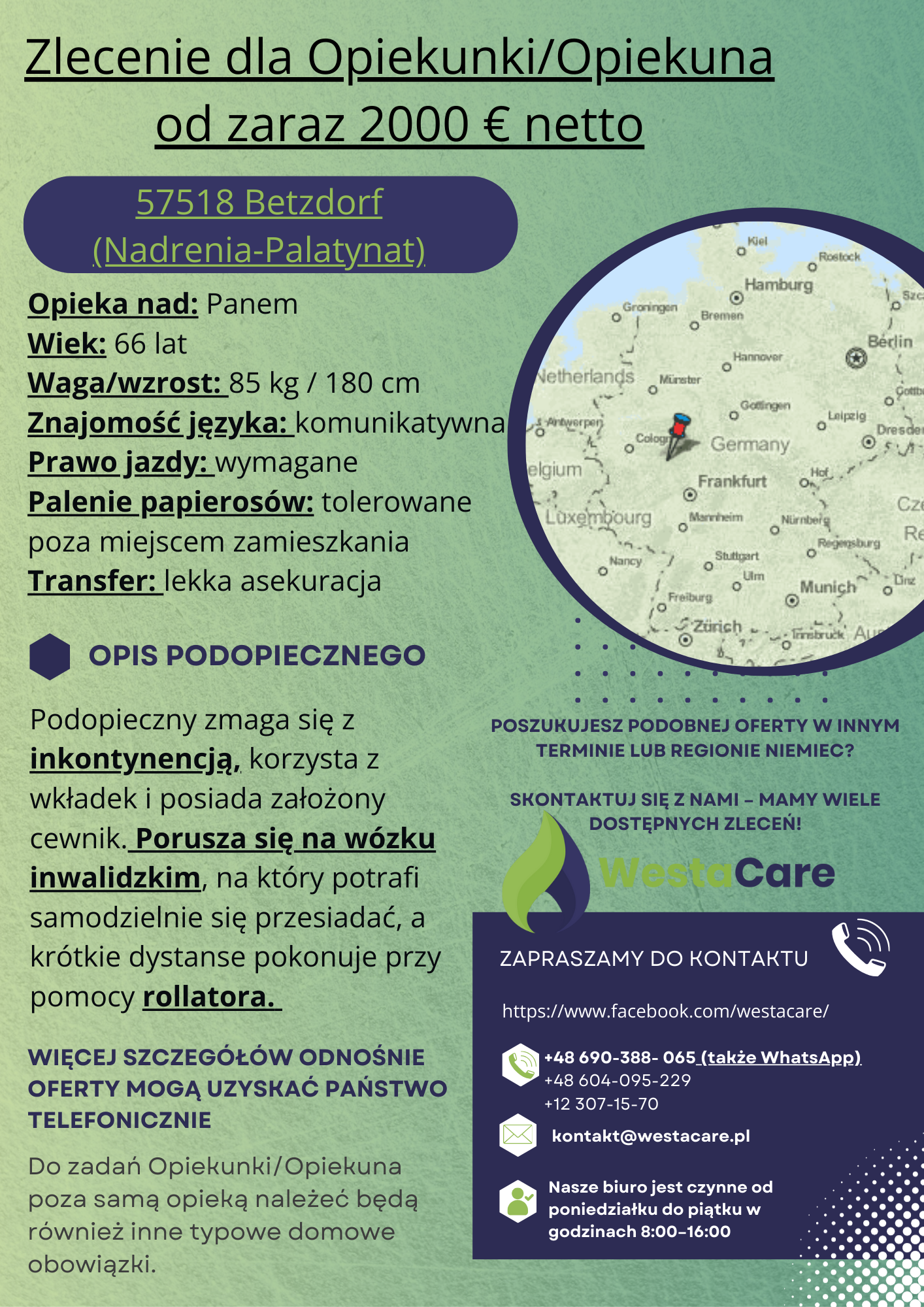 Zlecenie dla Opiekunki/Opiekuna od zaraz 2000 € netto
